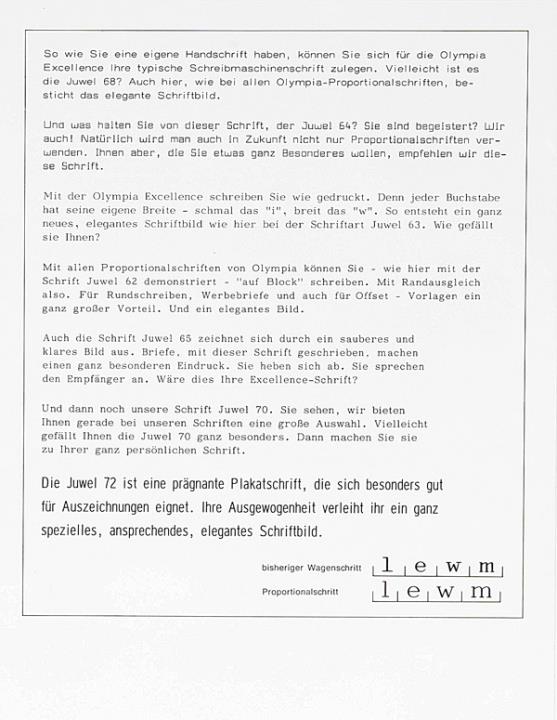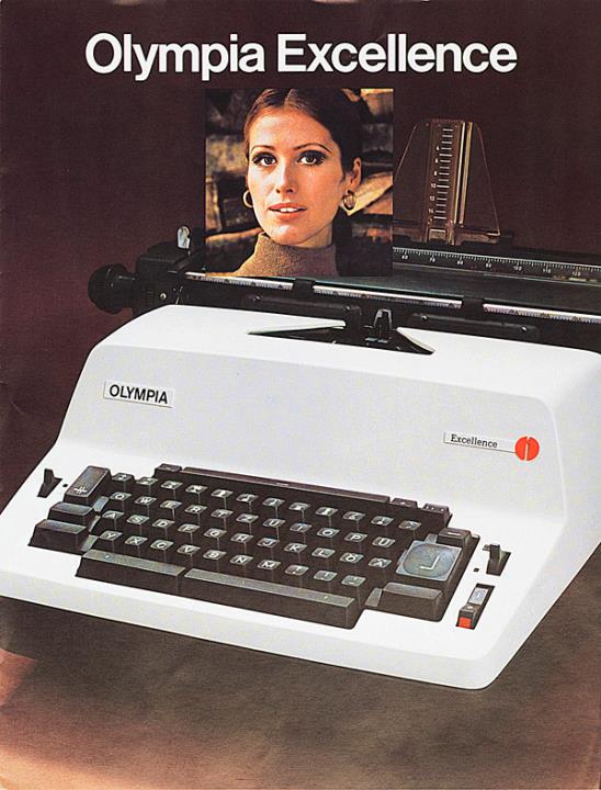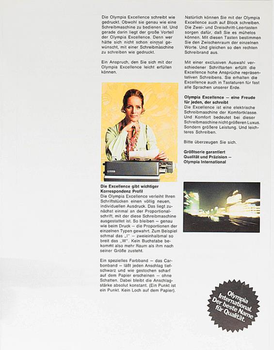 Faltprospekt für elektrische Schreibmaschine Olympia Excellence Nr. 1/22/007/01/E