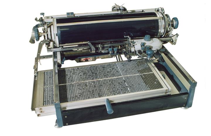 Elektrische Schreibmaschine NipponType Modell Typolit Eigenschaften: Zeiger, bewegliche Typenplatte mit 70x34 Einzeltypen (Kanji), Vorderanschlag, Karbonband Konstrukteur: Sugimoto Kyota, Seriennummer 386980