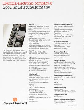 Faltprospekt für elektronische Schreibmaschine Olympia ES 100 Nr. 1/22/012/01