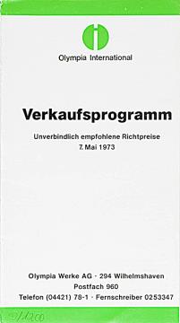Preisliste für Schreib- und Büromaschinen Olympia Unverbindlich empfohlene Richtpreise 7.Mai 1973 Nr. 1/01/060/01