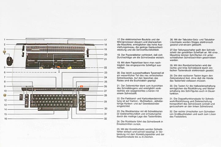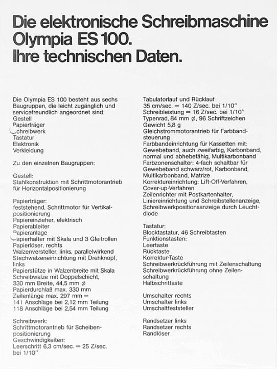 Faltprospekt für elektronische Schreibmaschine Olympia ES 100 Nr. 1/22/012/01