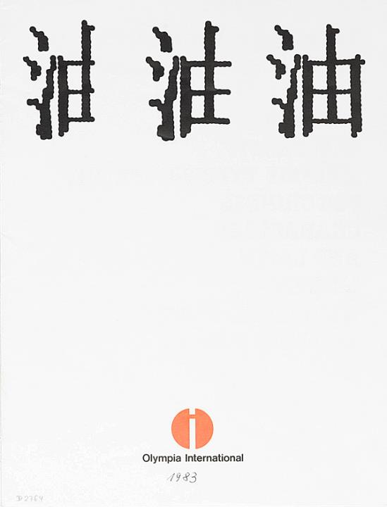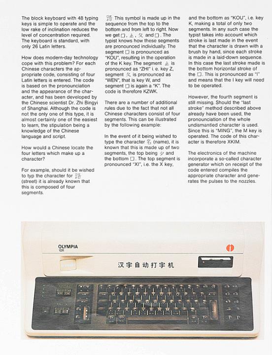 Faltprospekt für Speicherschreibmaschine Olympia 1011 mit lateinischer und chinesischer Schrift Nr. VWS 1480/10 Datum handschriftlich vermerkt