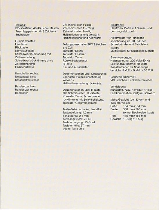 Prospekt für Schreibmaschine Olympia ES 100 Nr. 1/22/011/01