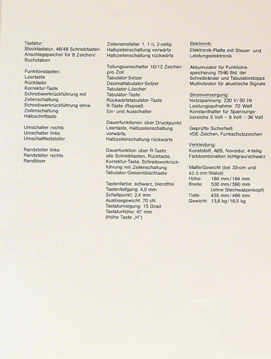 Prospekt für Schreibmaschine Olympia ES 101 Nr. 1/22/014/01
