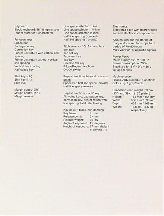 Prospekt für Schreibmaschine Olympia ES 101 Nr. 1/22/014/10
