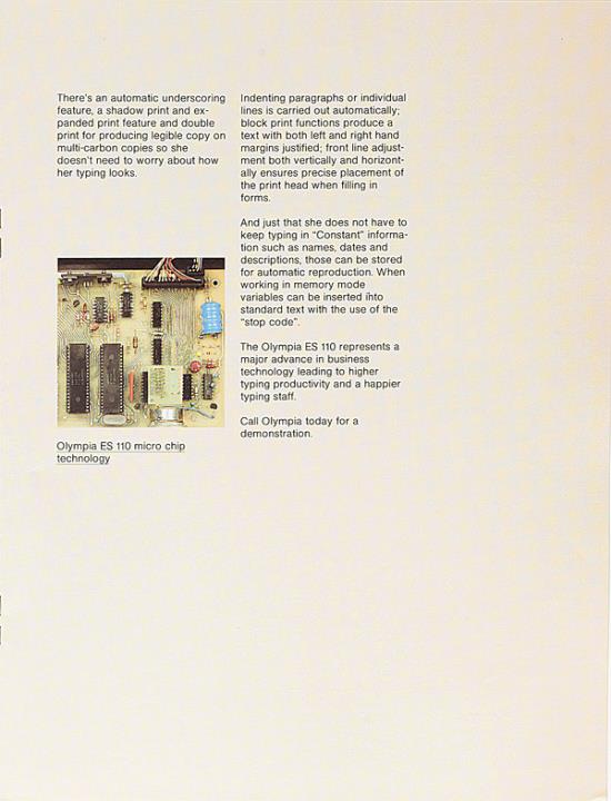 Prospekt für Speicherschreibmaschine Olympia ES 110 Nr. 1/22/017/10