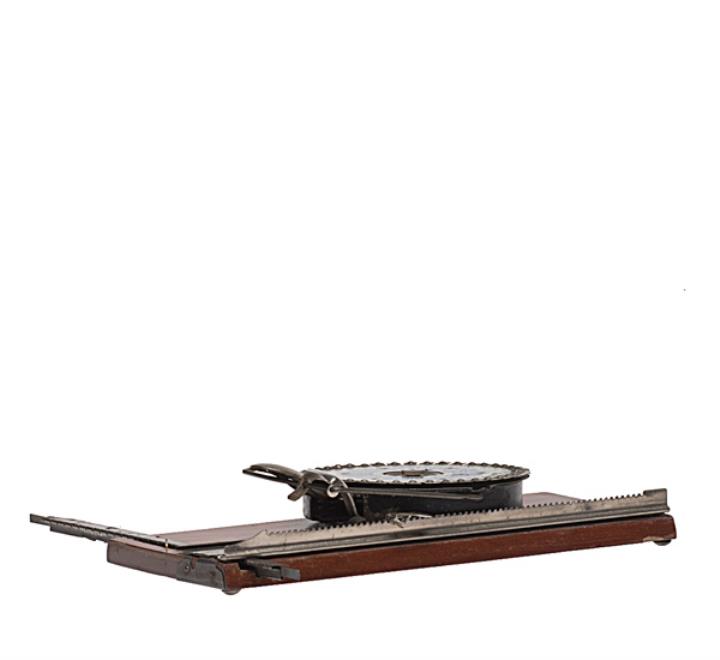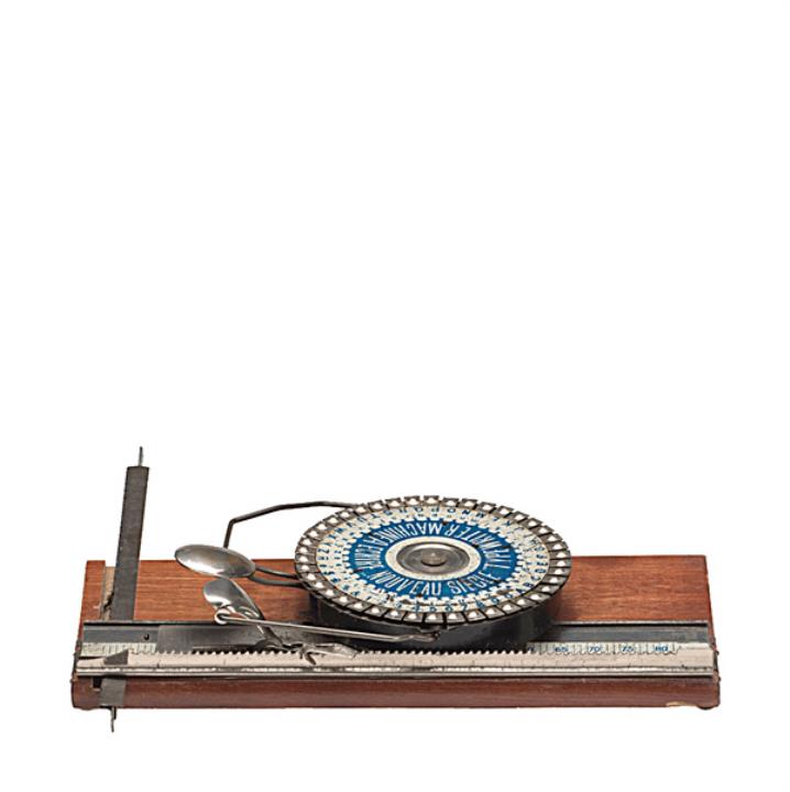 Schreibmaschine Nouveau Siecle (Simplex) Eigenschaften: Zeiger, Groß-/Kleinbuchstaben, Typenscheibe aus Gummi, Oberanschlag, Farbkissen Konstrukteur: Arnaldo Myrthle English, Philip Becker Besonderheit: französische Version der Schreibmaschine Simplex Typewriter