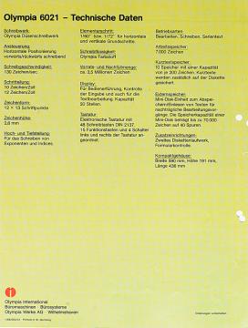 Faltprospekt für Speicherschreibmaschine Olympia 6021 Nr. 1/85/004/01