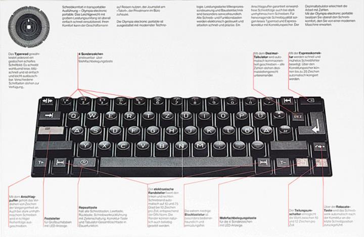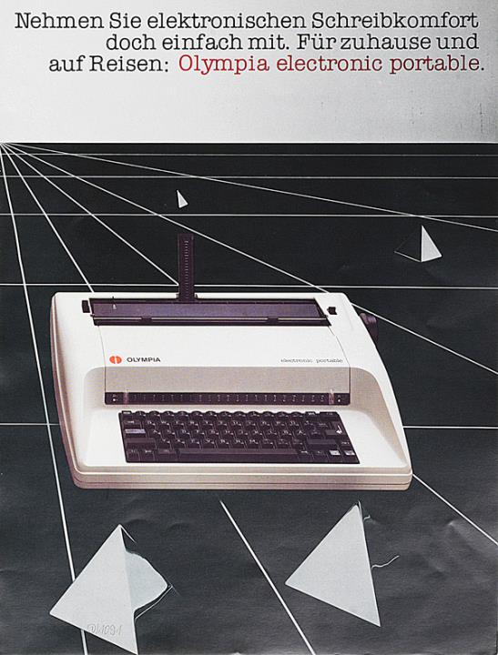 Faltprospekt für Schreibmaschine Olympia electronic portable Für zuhause und auf Reisen Nr. 1/22/069/01