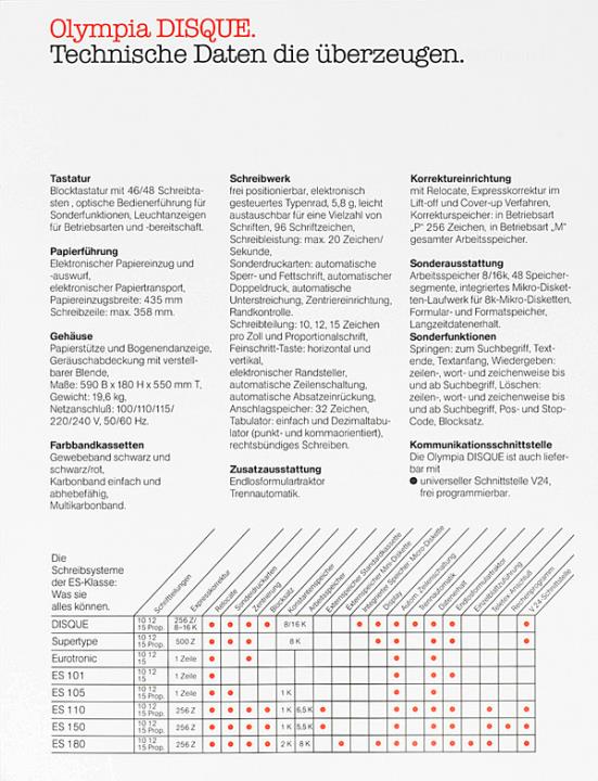 Prospekt für Speicherschreibmaschine Olympia Disque Nr. 1/22/012/01
