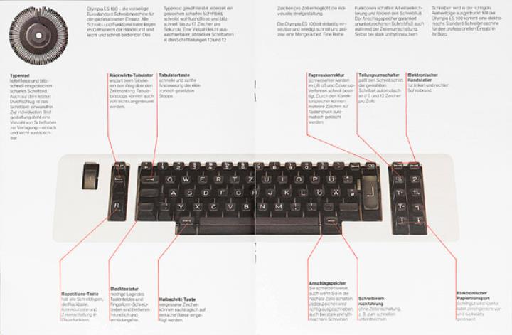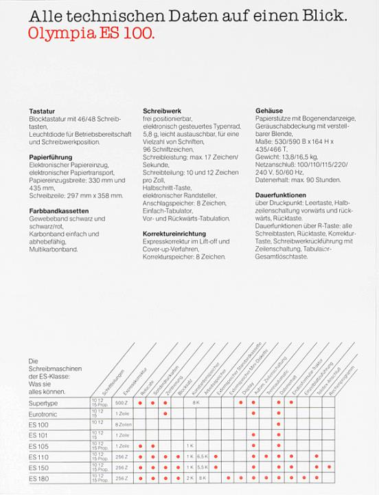 Prospekt für elektronische Schreibmaschine Olympia ES 100 Nr. 1/22/011/01
