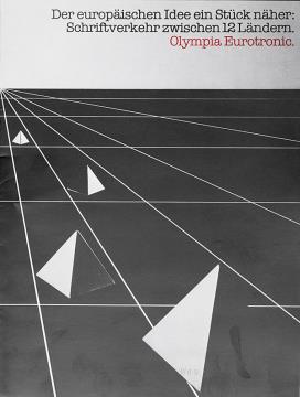 Prospekt für elektronische Schreibmaschine Olympia Eurotronic mit wählbarer Tastatur und Schriftzeichen Schriftverkehr zwischen 11 Ländern Nr. 1/22/008/01