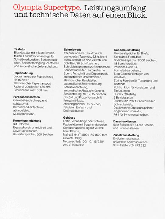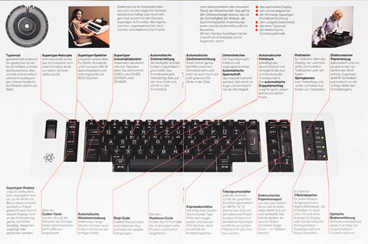 Prospekt für elektronische Schreibmaschine Olympia Supertype Nr. 1/22/010/01