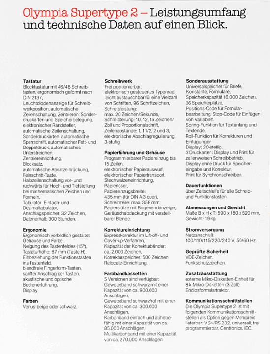 Prospekt für elektronische Schreibmaschine Olympia Supertype 2 Nr. 1/22/013/01