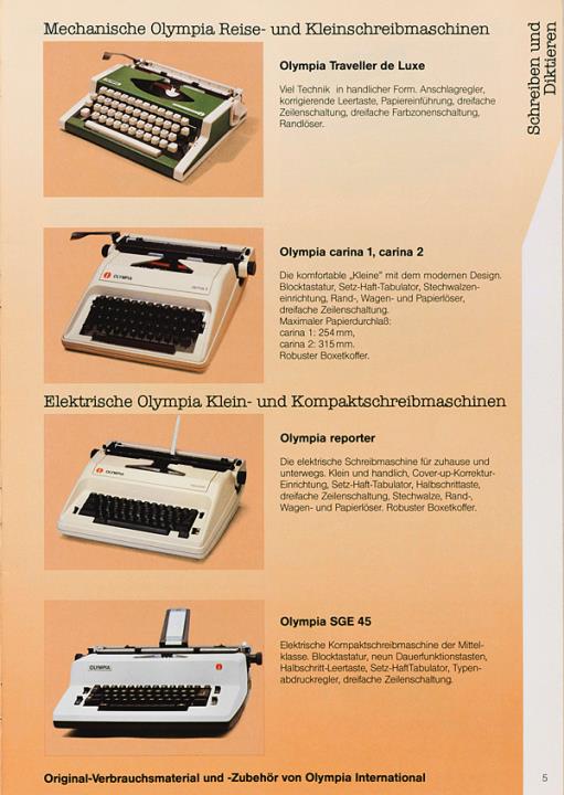 Katalog für Schreib- und Büromaschinen Olympia Nr. VWS 1610 Stand 4/84