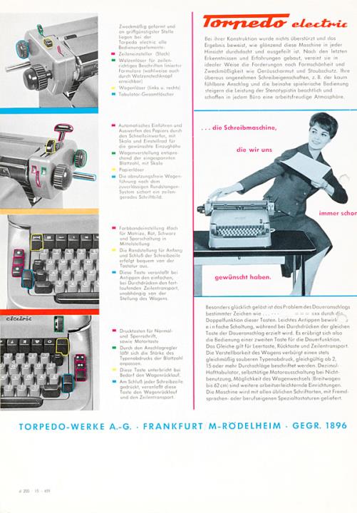 Prospekt für Schreibmaschine Torpedo electric die neueste unter den elektrischen Schreibmaschinen Nr. d200.15.459