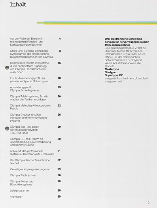 Katalog für Schreib- und Büromaschinen Olympia Nr. 5/00 029/01 4.85