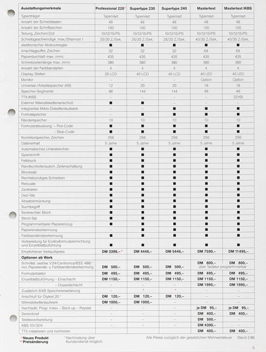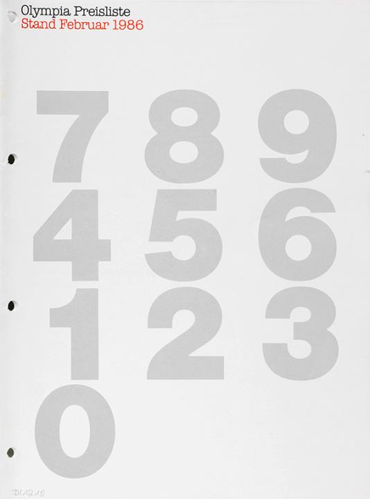Olympia Preisliste Stand Februar 1986