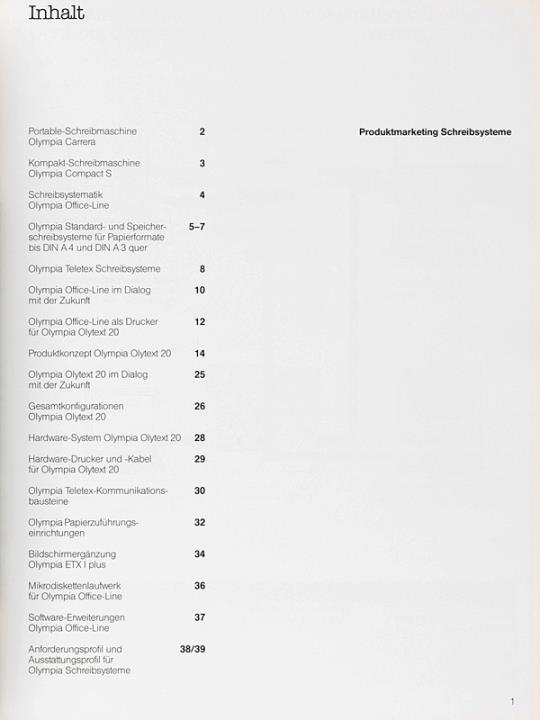 Katalog für Büroschreibmaschine Olympia Nr. 5/00 039/01 03.86