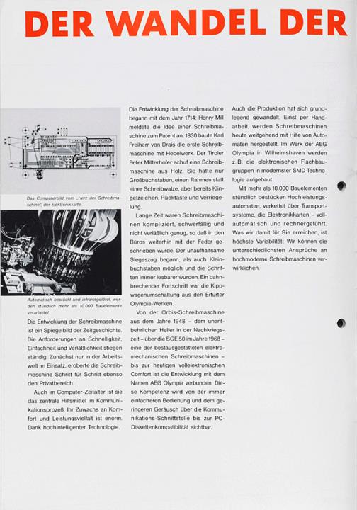 Prospekt für elektronische Schreibmaschine AEG Olympia Comfort Nr. 5/111/0601 06.90 WV
