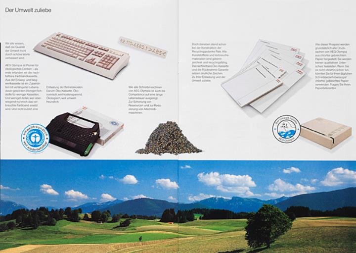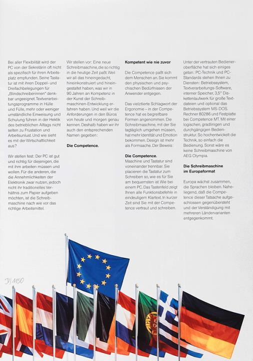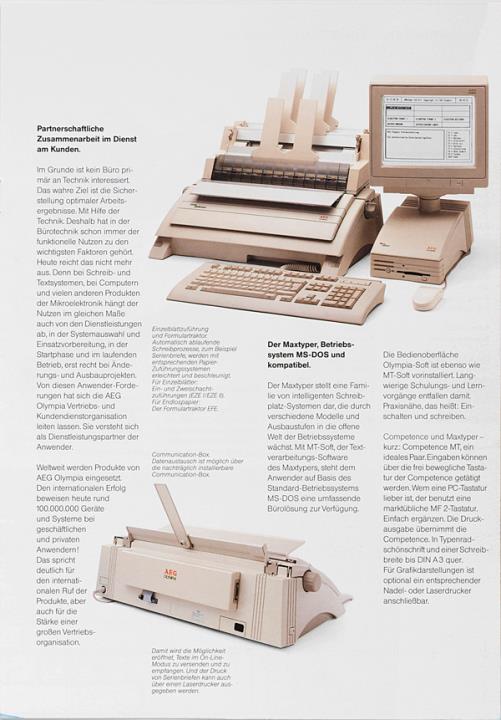 Prospekt für Schreibmaschine AEG Olympia Competence Die Schreibmaschine, die so heißt wie sie ist Nr. 5/111/5001 03.92 WV
