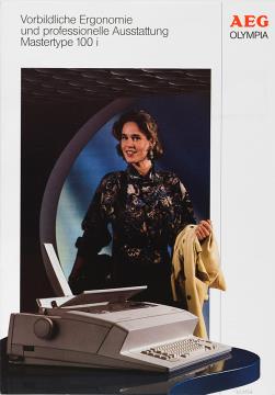 Faltprospekt für elektronische Schreibmaschine AEG Olympia Mastertype 100 i Vorbildliche Ergonomie und professionelle Ausstattung Nr. 5/110/1701 03.90 WV
