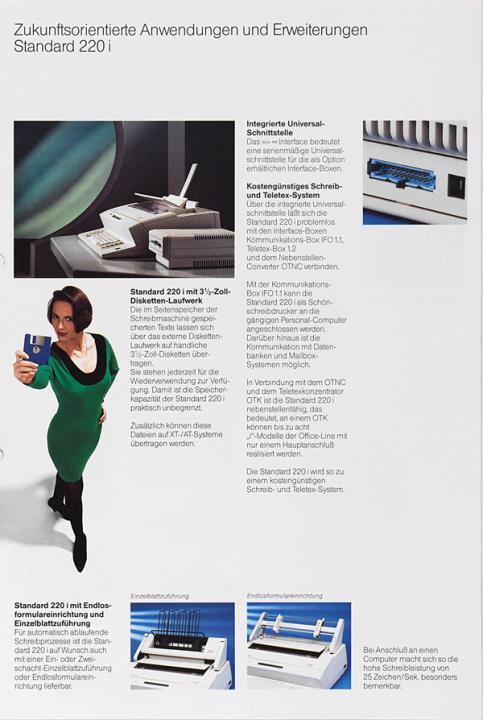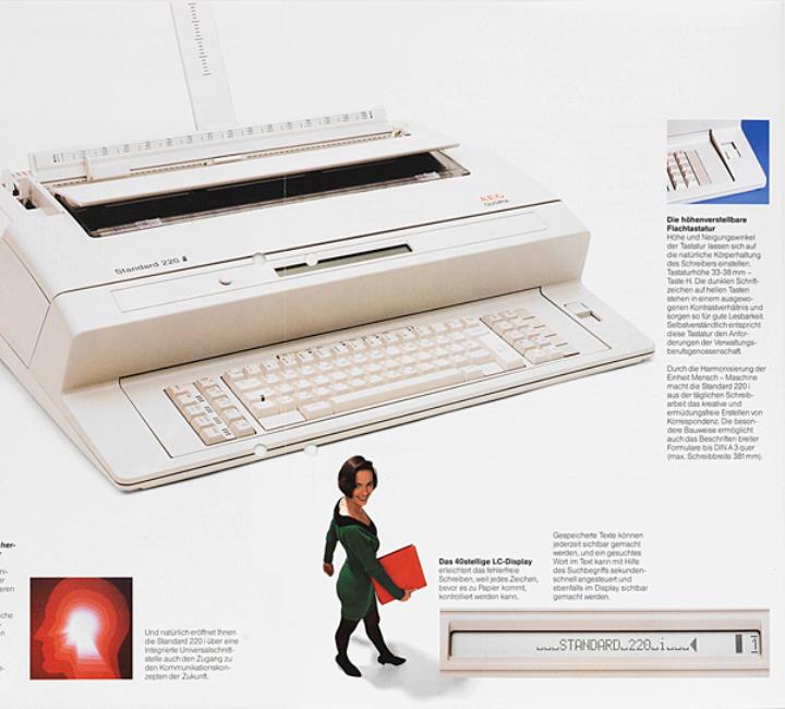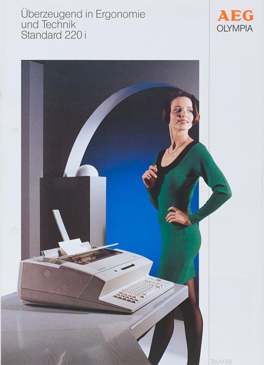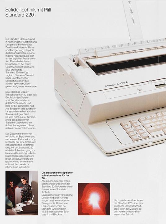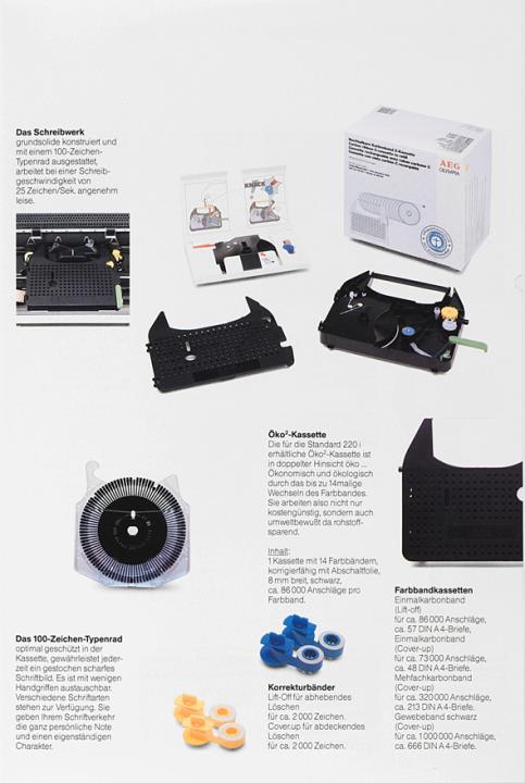 Faltprospekt für elektronische Schreibmaschine AEG Olympia Standard 220 i Überzeugend in Ergonomie und Technik Nr. 5/110/2401 02.90 WV