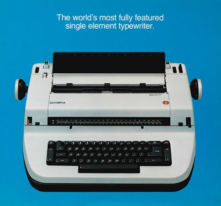 Faltprospekt für Kugelkopfschreibmaschine Olympia Correcting 77