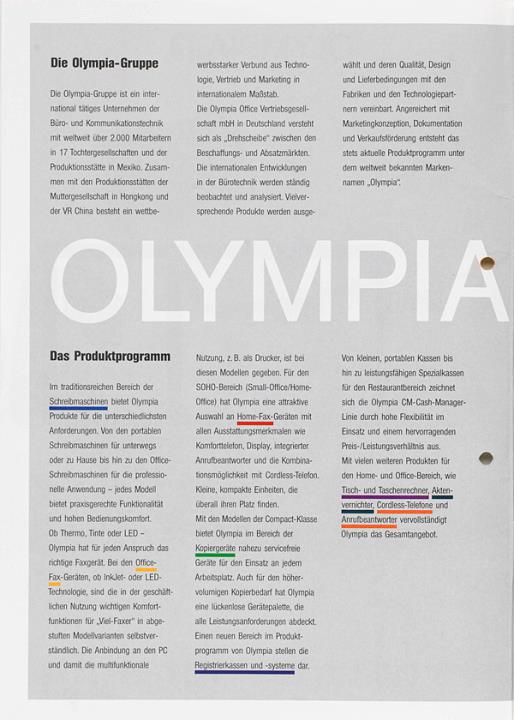 Katalog für Schreib- und Büromaschinen Olympia Nr. 5/000/2001 03.96