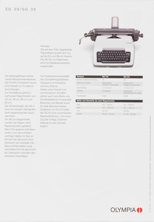 Prospekt für Schreibmaschine Olympia SG 3 N, SG 3 S Nr. 5/112/3201 01.94
