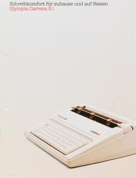 Prospekt für elektrische Schreibmaschine Olympia Carrera S i Schreibkomfort für zuhause und auf Reisen Nr. 5/11 048/01 09.87