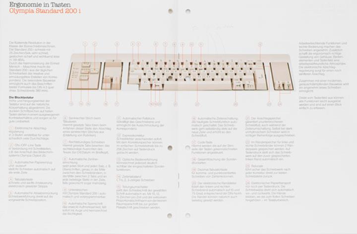 Faltprospekt für Schreibmaschine Olympia compact S Elektronischer Schreibkomfort Nr. 5/11 044/01