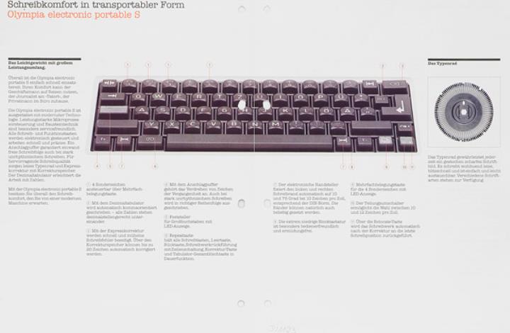 Faltprospekt für Schreibmaschine Olympia electronic portable S Schreibkomfort für zuhause und auf Reisen Nr. 5/11 039/01