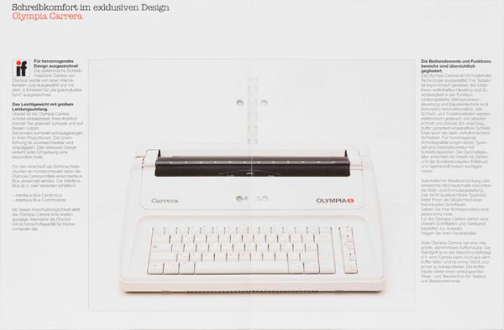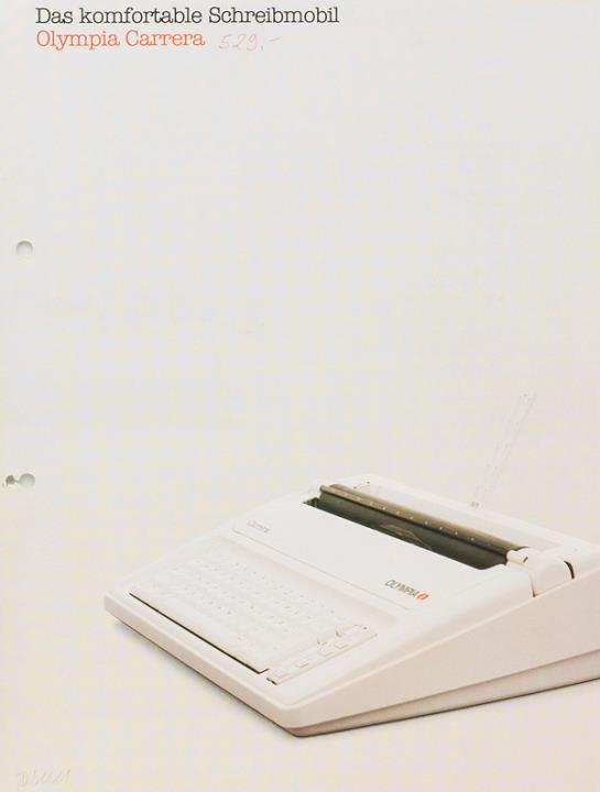 Faltprospekt für elektrische Schreibmaschine Olympia Carrera Das komfortable Schreibmobil Nr. 5/11 049/01 10.87