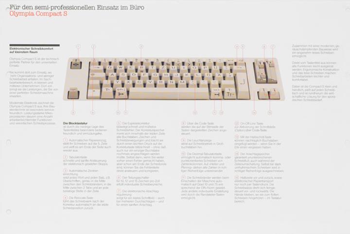 Faltprospekt für Schreibmaschine Olympia Compact S Elektronischer Schreibkomfort Nr. 5/11 044/01 3.85