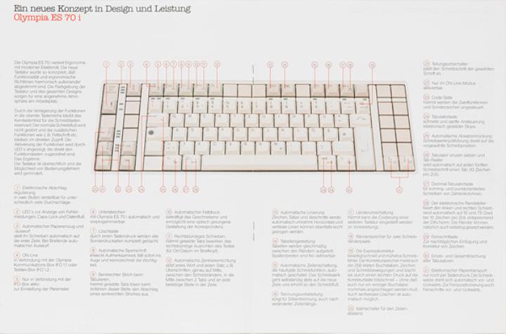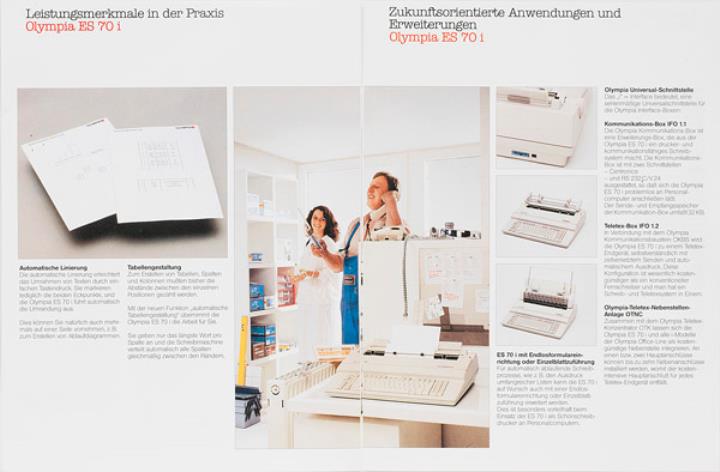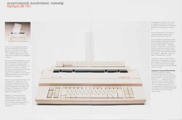 Prospekt für Schreibmaschine Olympia ES 70 i Elektronisch schreiben und gestalten Nr. 5/11 002/01 09.87