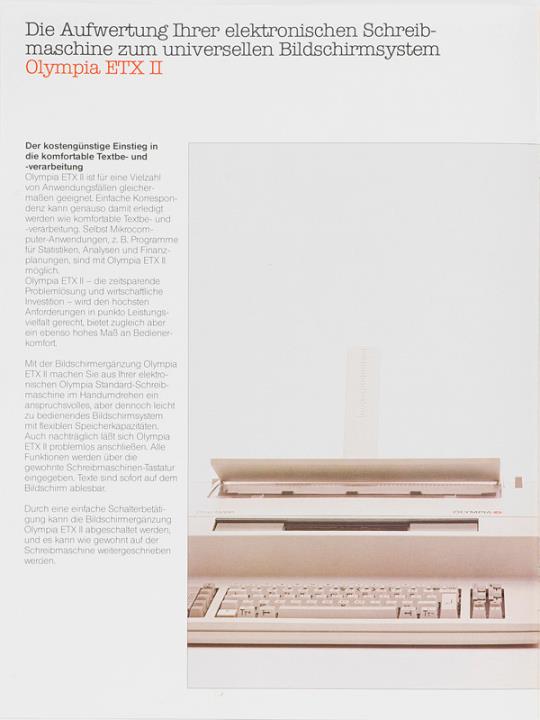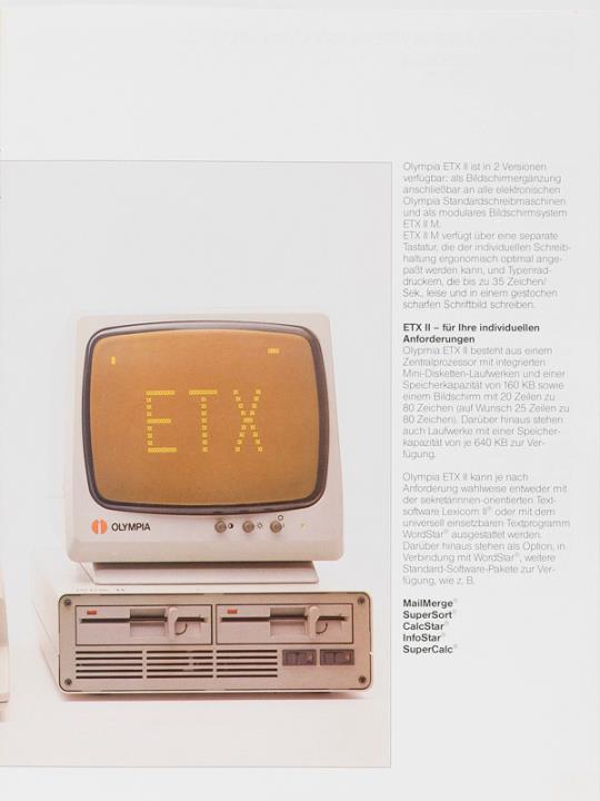 Prospekt für Bildschirm-Schreibsystem Olympia ETX II Das Bildschirmsystem mit vielfältigen Anwendungen Nr. 3.85 5/12 059/01