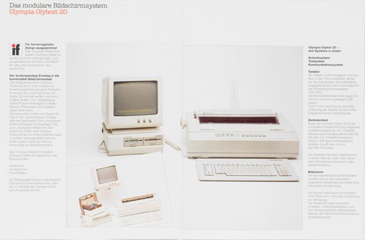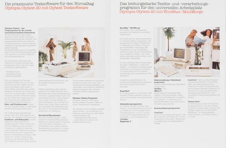 Prospekt für Bildschirmschreibmaschine Olympia Oytext 20 Eine neue Dimension des Bildschirmschreibens Nr. 5/11 034/01 03 87