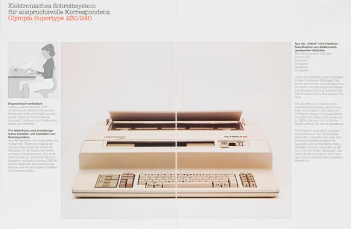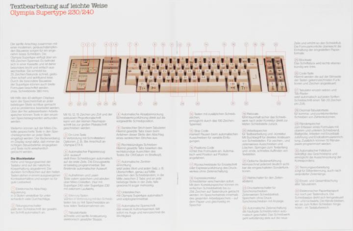 Prospekt für elektronische Schreibmaschine Olympia Supertype 230/240 Zukunftsorientiert und ergonomisch vorbildlich Nr. 5/11 014/01