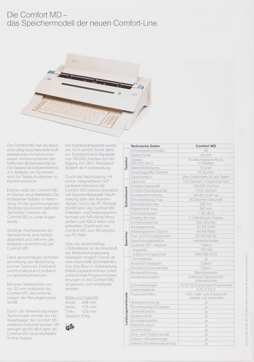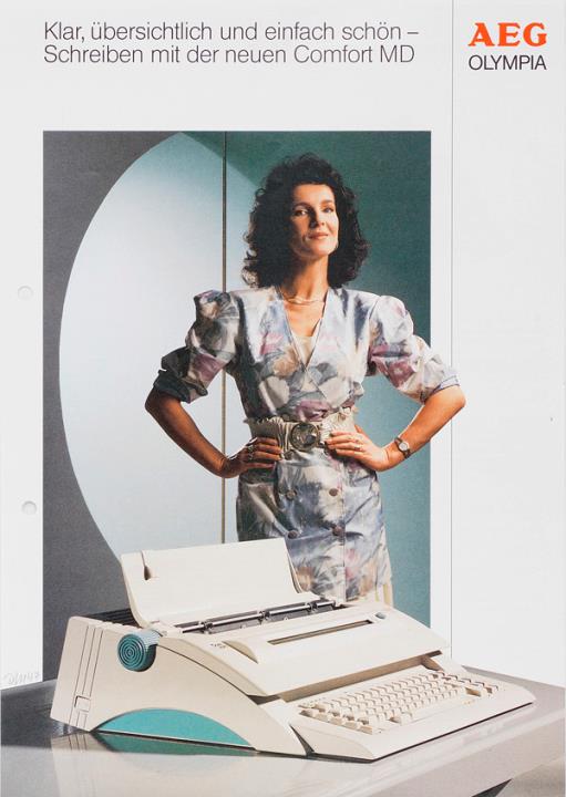 Prospekt für elektronische Schreibmaschine AEG Olympia Comfort MD Klar, übersichtlich und einfach schön Nr. 5/110/2701 03.90 WV