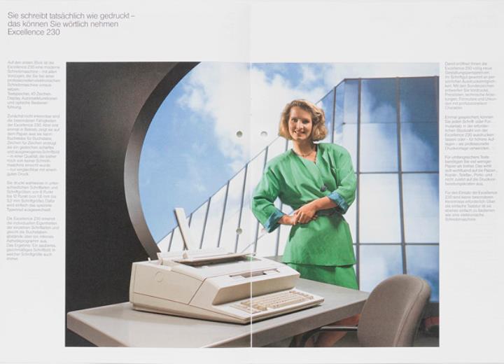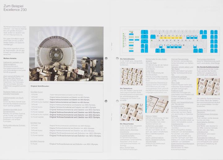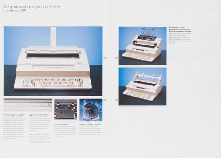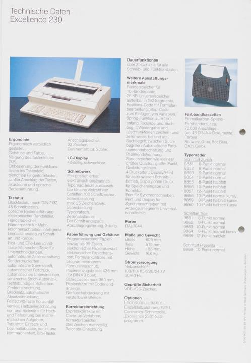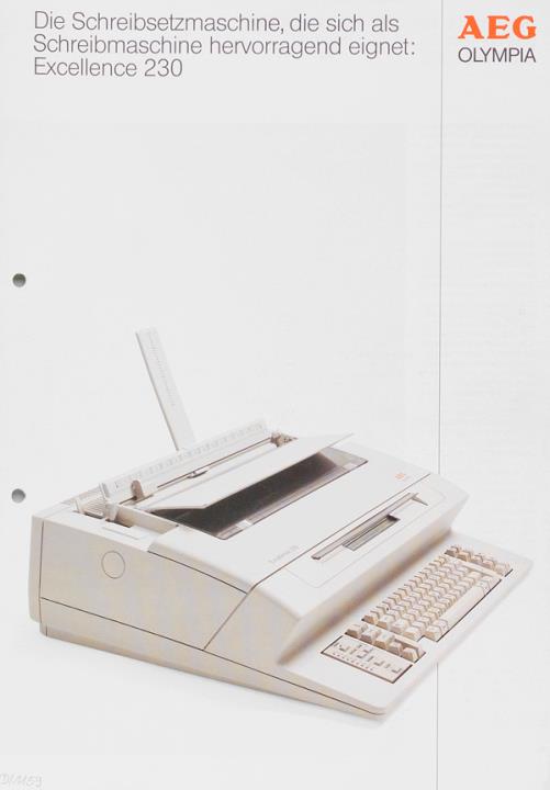 Prospekt für elektronische Schreibmaschine AEG Olympia Excellence 230 Die Schreibsetzmaschine, die sich als Schreibmaschine hervorragend eignet Nr. 5/110/1401 09.89