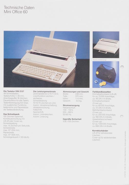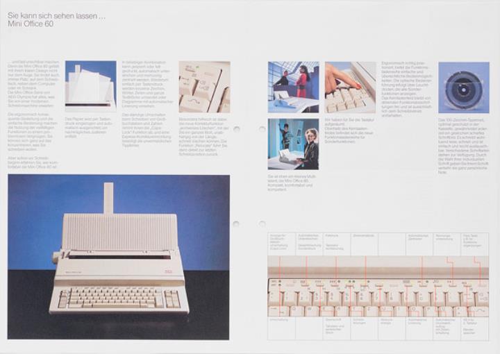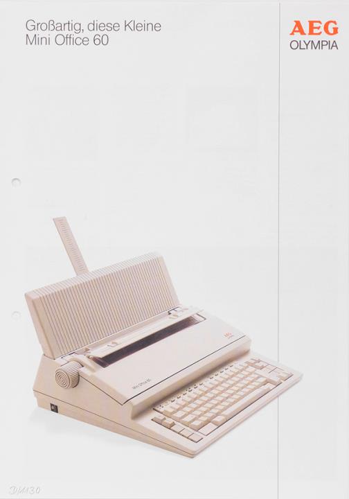 Faltprospekt für elektrische Schreibmaschine AEG Olympia Mini Office 60 Großartig, diese Kleine Nr. 5/110/1101 01.89
