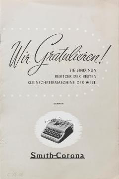 Bedienungsanleitung für Schreibmaschine Smith-Corona Wir Gratulieren! Sie sind nun Besitzer der besten Kleinschreibmaschine der Welt Nr. PS513-15 German 2M 7-49