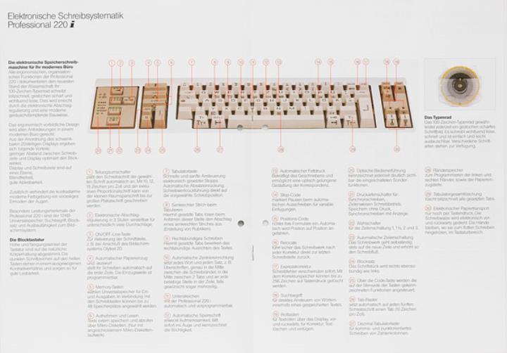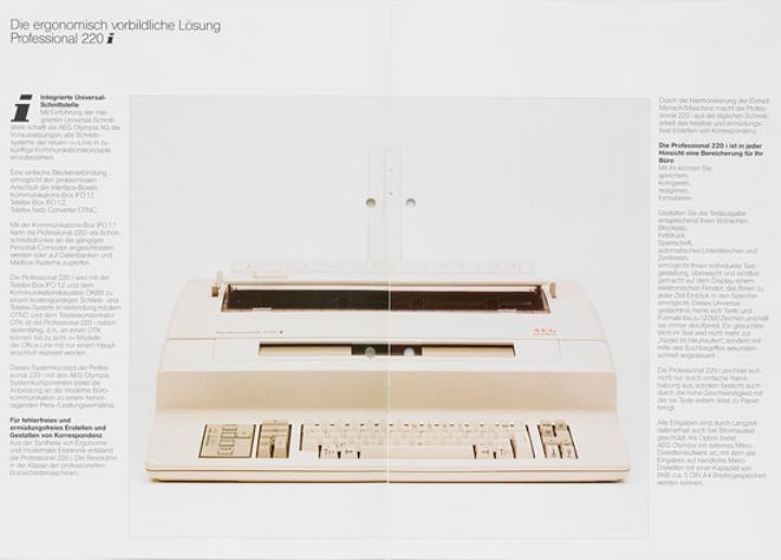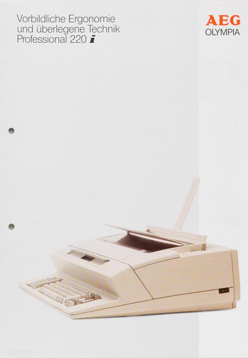Prospekt für elektronische Schreibmaschine AEG Olympia Professional 220 i Vorbildliche Ergonomie und überlegene Technik Nr. 5 110 8901 02.88