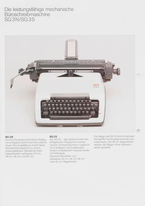 AEG Olympia Die mechanische Büro-Standardschreibmaschine SG 3N/SG 3 S