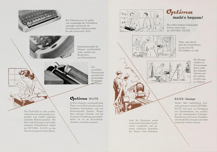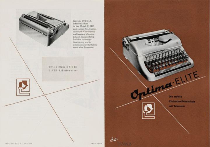 Faltprospekt für Schreibmaschine Optima Die stabile Kleinschreibmaschine mit Tabulator Nr. 6879 Li III-9-5 854 G4