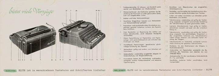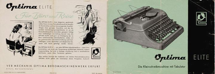 Faltprospekt für Schreibmaschine Optima Die Kleinschreibmaschine mit Tabulator Nr. III/9/14 EMZ 853 10