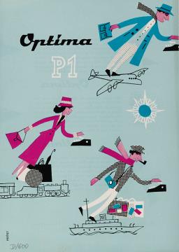 Prospekt für Schreibmaschine Optima P1 die moderne Reiseschreibmaschine mit dem eleganten Koffer Nr. D 520 BA 157