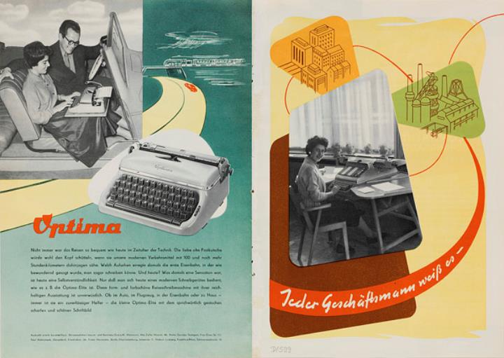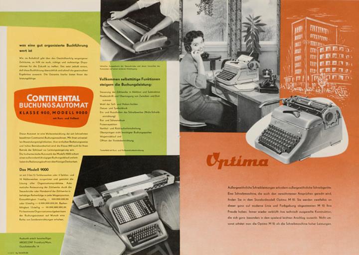 Prospekt für Schreibmaschine und Buchungsmaschine Optima Nr. III/9/31 Ag 10/0375/55 Fragment
