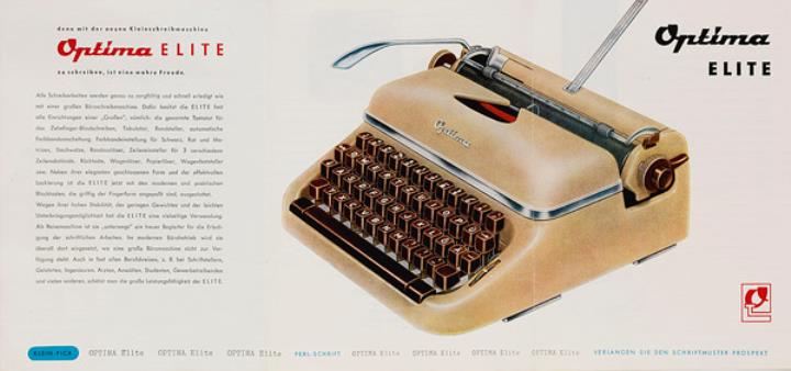Faltprospekt für Schreibmaschine Optima Elite Nr. D617 B 756